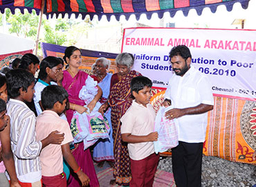 Through erammal ammal arakattalai, we reach out to needy people from most backward parts of the country and provide them the 5 basic needs to survive and prove opportunities to not only complete their education, but also transform into confident, competent and socially responsible individuals.